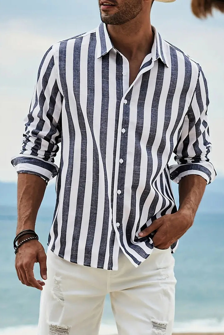 Herren Leinenhemd Gestreift Langarm – Modern & Sommerlich
