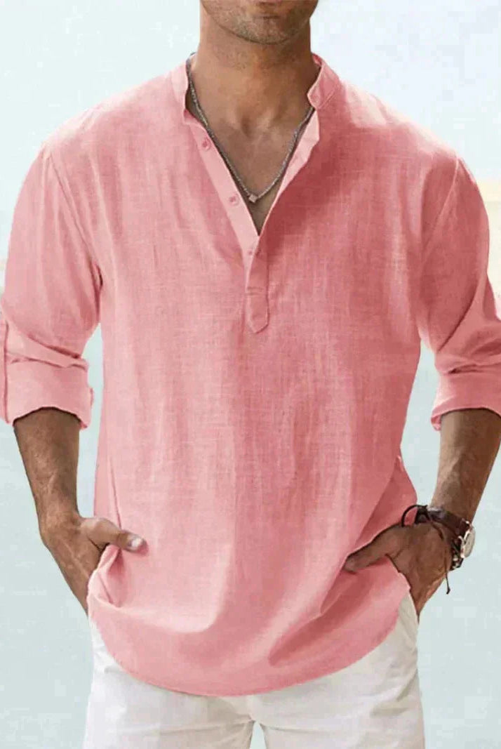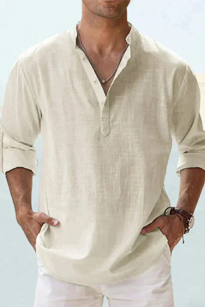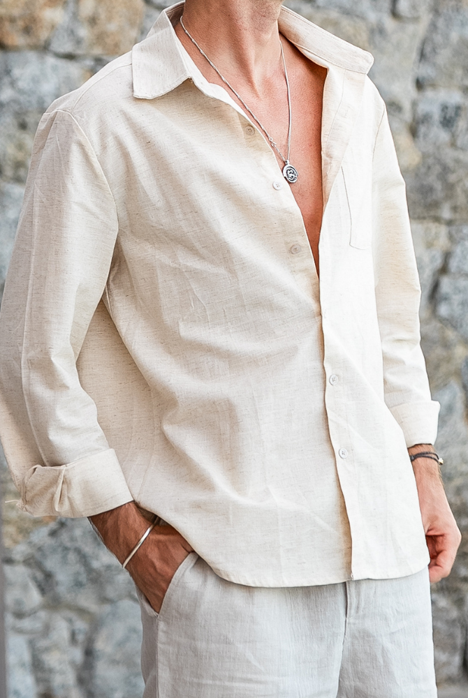 Herren Leinenhemd V-Ausschnitt Langarm – Locker & Stilvoll