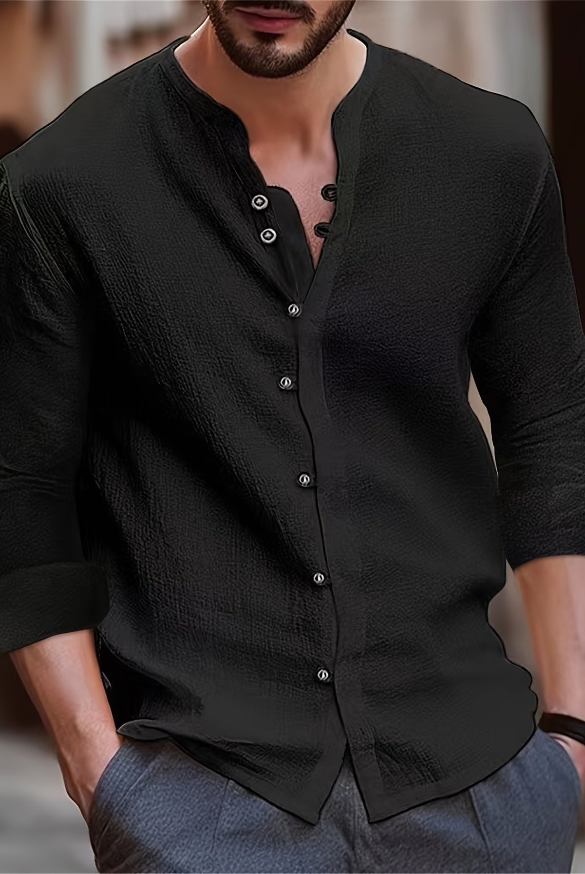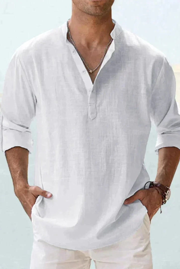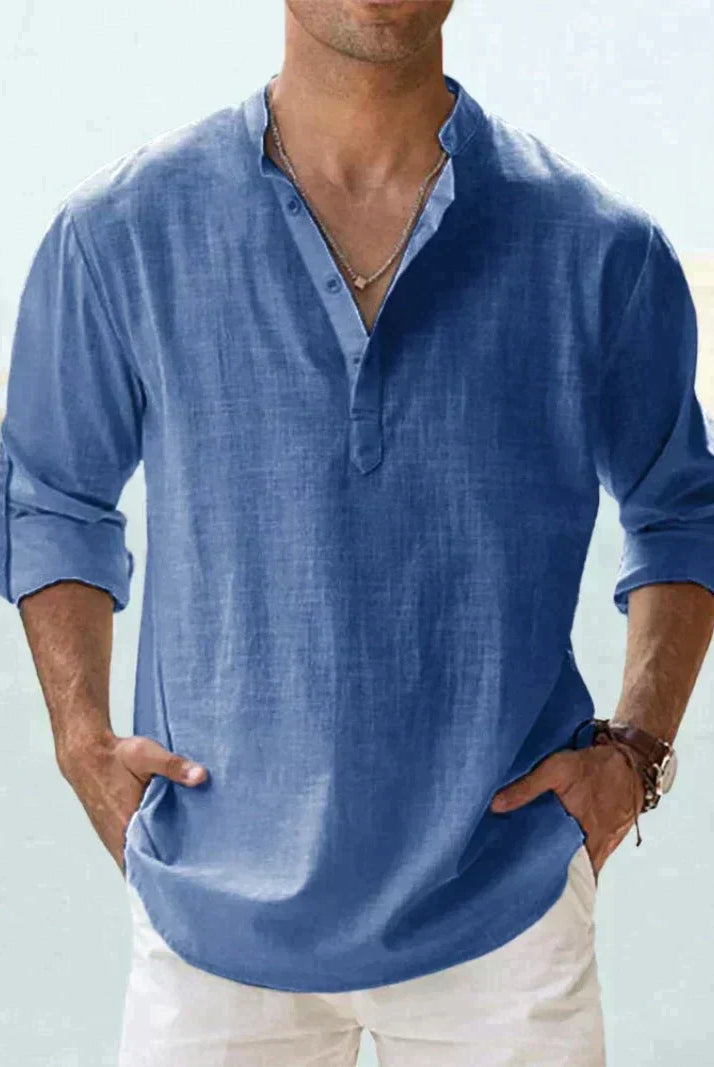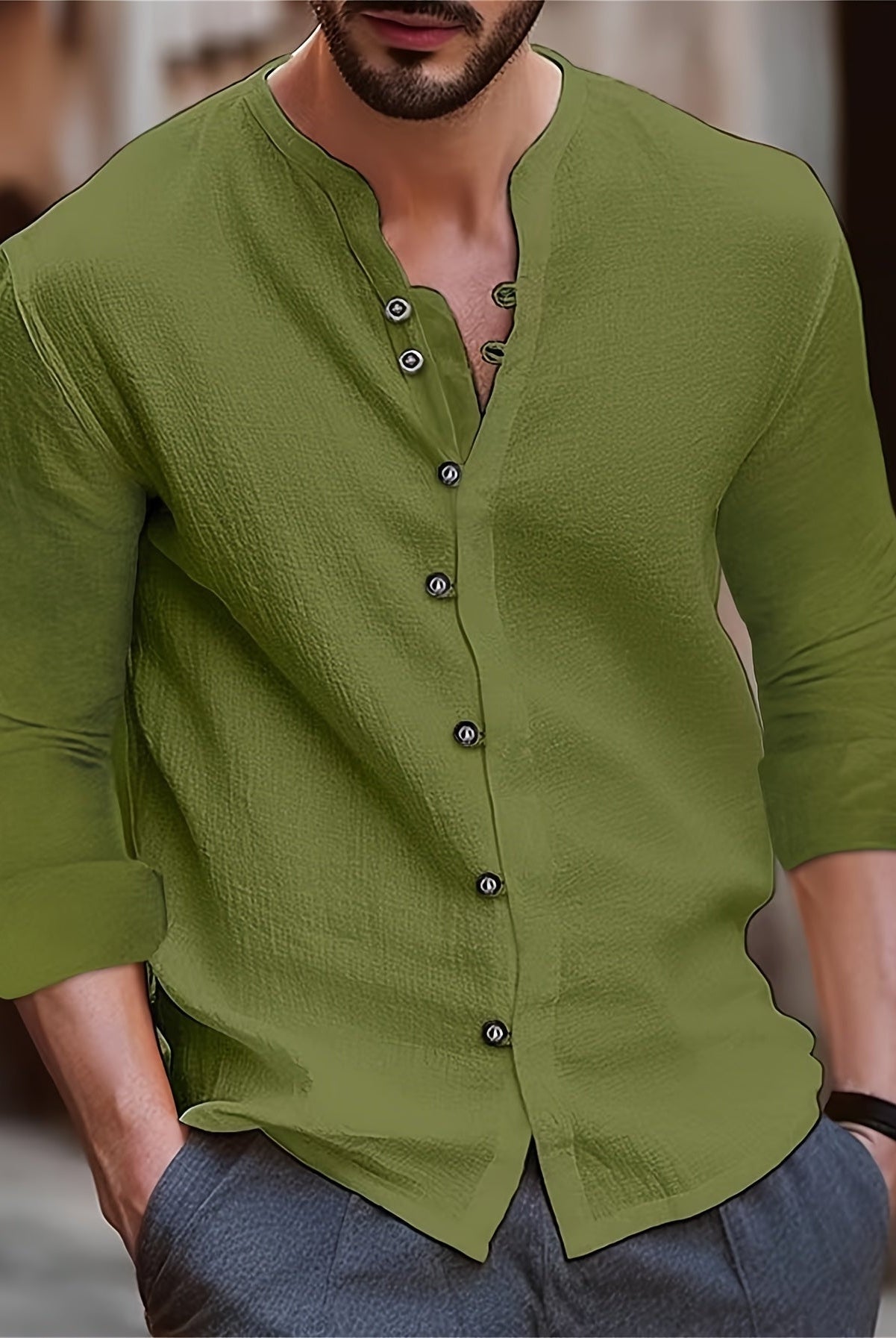 Herren Leinenhemd V-Ausschnitt – Locker & Modern